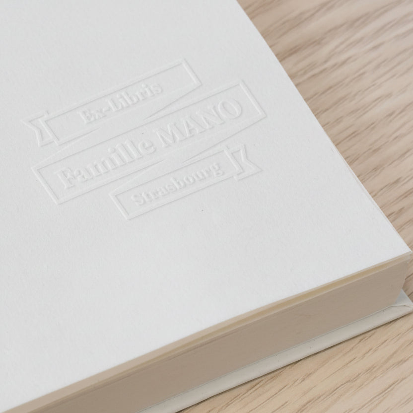 Fügen Sie Ihren Lieblingsbüchern mit unserem Prägestempel-Modell Ex-libris Retro-Banner einen Hauch von Vintage hinzu.