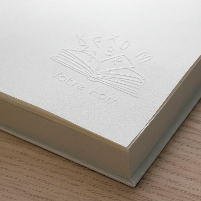 Stellen Sie sich vor, Sie markieren Ihre Bücher und Dokumente mit einer unverwechselbaren und anspruchsvollen Prägung dank unseres Prägestempelmodells mit dem Titel: Ex Libris Buch schwebende Buchstaben. Einzigartig und gepflegt, ermöglicht Ihnen dieses Werkzeug, Ihre Bibliothek zu personalisieren, indem Sie Ihren Werken eine persönliche Note hinzufügen. Dieses Modell stellt ein Buch dar, über dem Buchstaben schweben, deren Text vollständig von Ihnen anpassbar ist.