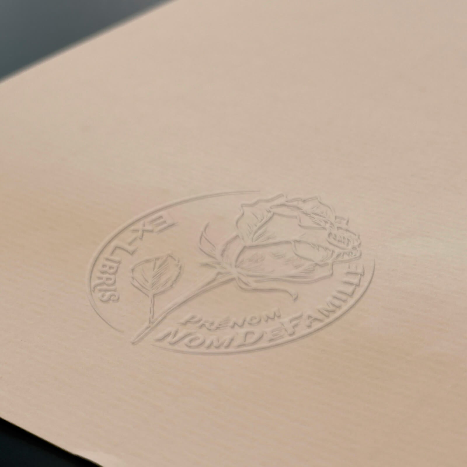 Stellen Sie sich vor, Sie markieren Ihre Bücher oder persönlichen Dokumente mit einer unverwechselbaren Note dank unseres Prägestempels mit dem Titel: Einzigartiges Ex-libris Rose. Praktisch und einfach, ermöglicht Ihnen dieses Werkzeug, Ihre Bibliothek mit einer einzigartigen Diskretion und Stil zu personalisieren. Dieses Modell zeigt eine zarte Rose in der Mitte, ergänzt durch einen anpassbaren Text darum herum.