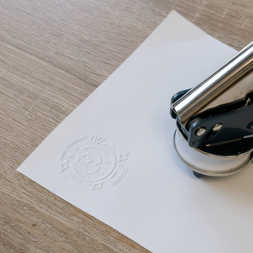 Stellen Sie sich vor, Sie verleihen Ihren Büchern, Karten oder persönlichem Briefpapier eine einzigartige Note mit unserem Prägestempel-Modell mit dem Titel: Ex-libris Mond Cartoon. Dieser Prägestempel ist eine elegante Möglichkeit, Ihre persönlichen Gegenstände mit einem originellen und anpassbaren Motiv zu kennzeichnen. Dieses Modell zeigt einen lächelnden Mond mit funkelnden Sternen drumherum und schafft eine fröhliche und fantasievolle Szene.