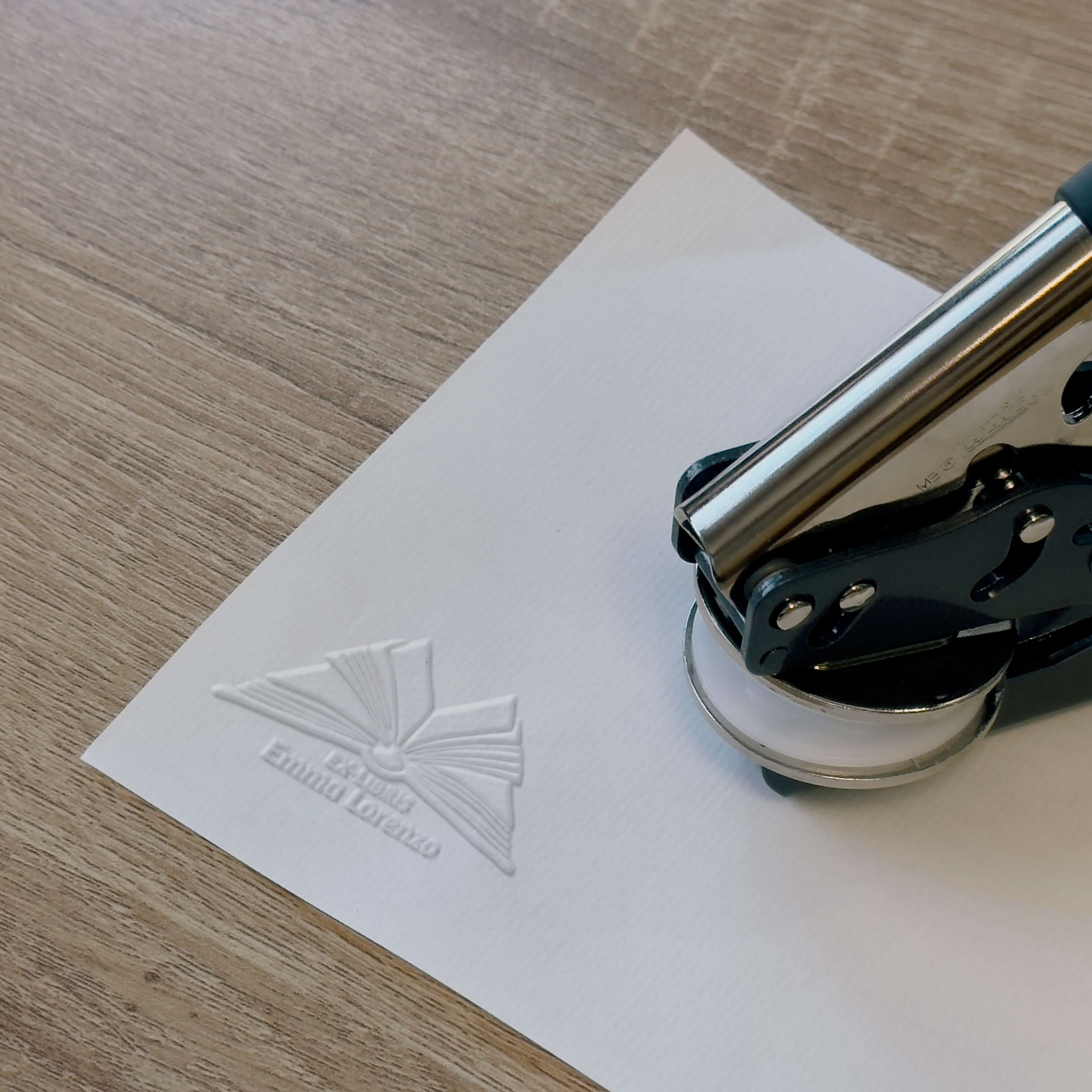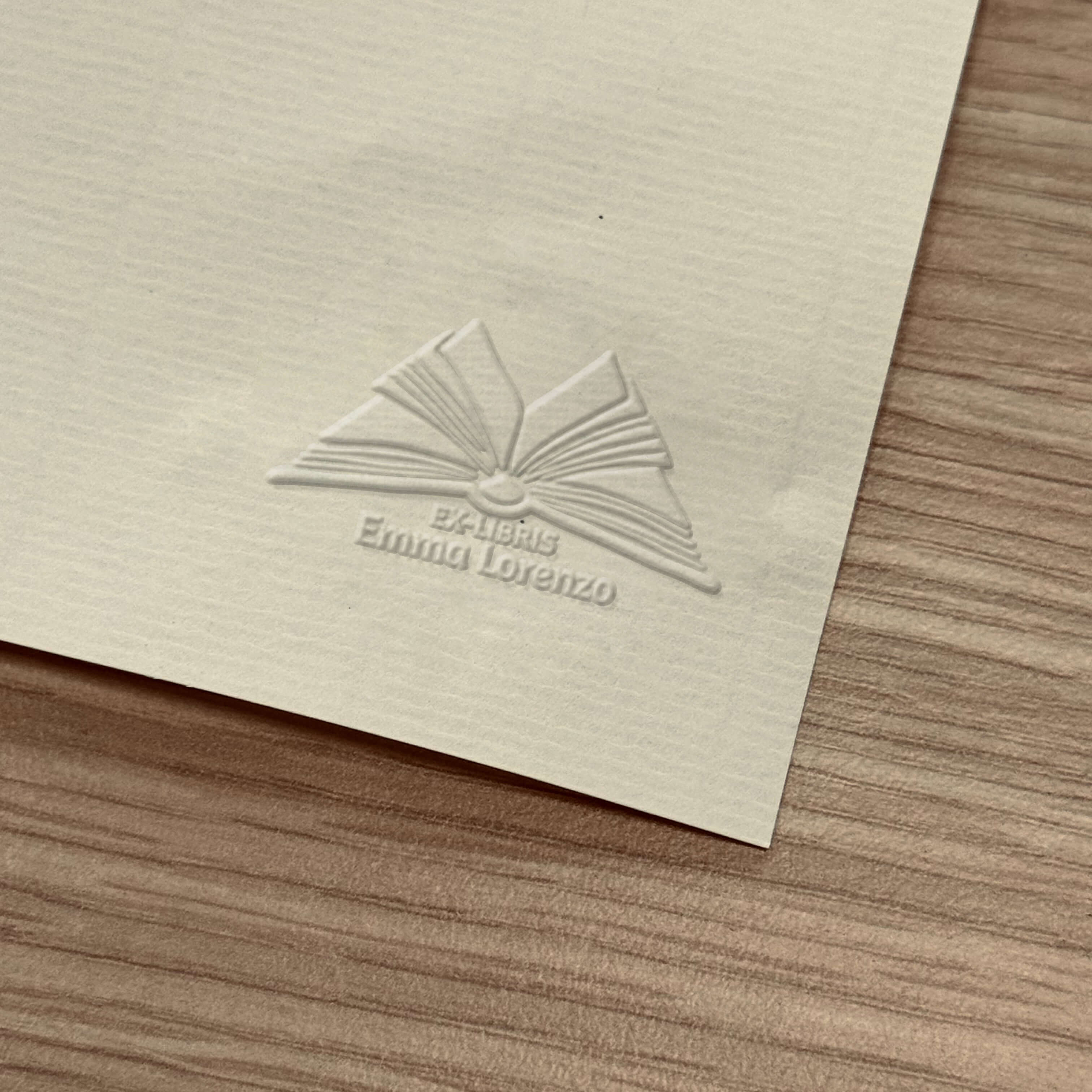 Erstellen Sie ein personalisiertes und elegantes Ex Libris mit diesem offenen Buchmotiv für Ihre professionellen Prägezangen.