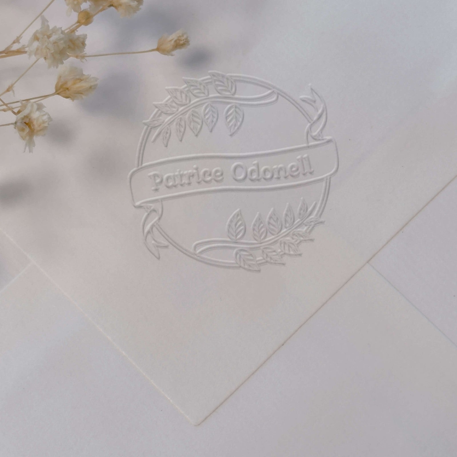 Personalisieren Sie Ihre Kreationen mit diesem runden Prägezangen-Modell im raffinierten pflanzlichen Design, ideal für die Markierung von Korrespondenz und offiziellen Dokumenten.