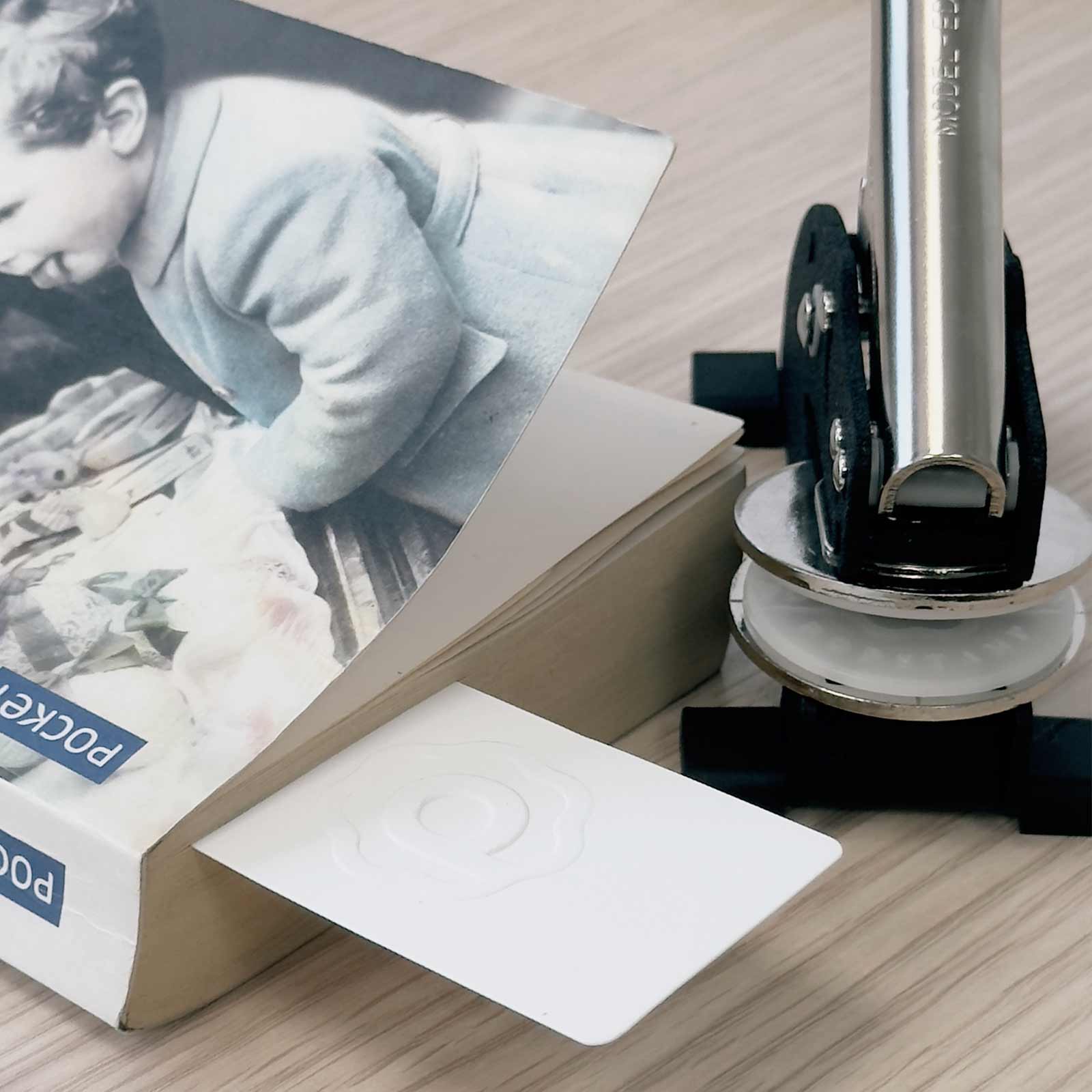 Unsere Prägezangen sind so konzipiert, dass sie sich an verschiedene Papierarten anpassen, sei es Standardpapier (80-120 g/m²) oder dickere Einladungskartons (bis zu 350 g/m²). Für optimale Ergebnisse empfehlen wir, die Shiny® EM bei Papierstärken über 200 g/m² zu vermeiden.