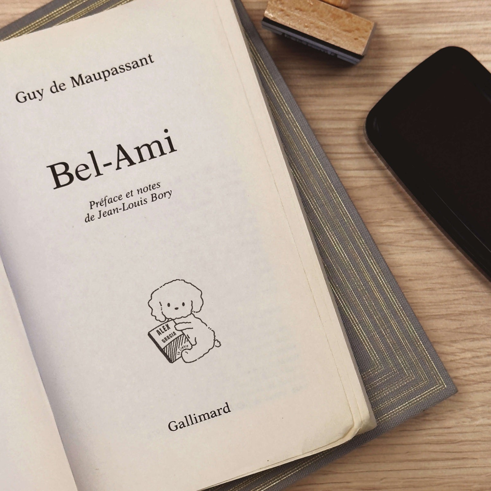 Erstellen Sie Ihr personalisiertes Ex-libris mit diesem Cartoon-Welpen-Stempel, der stolz ein Buch hält, perfekt, um Ihre Werke mit einer einzigartigen und spielerischen Prägung zu kennzeichnen.