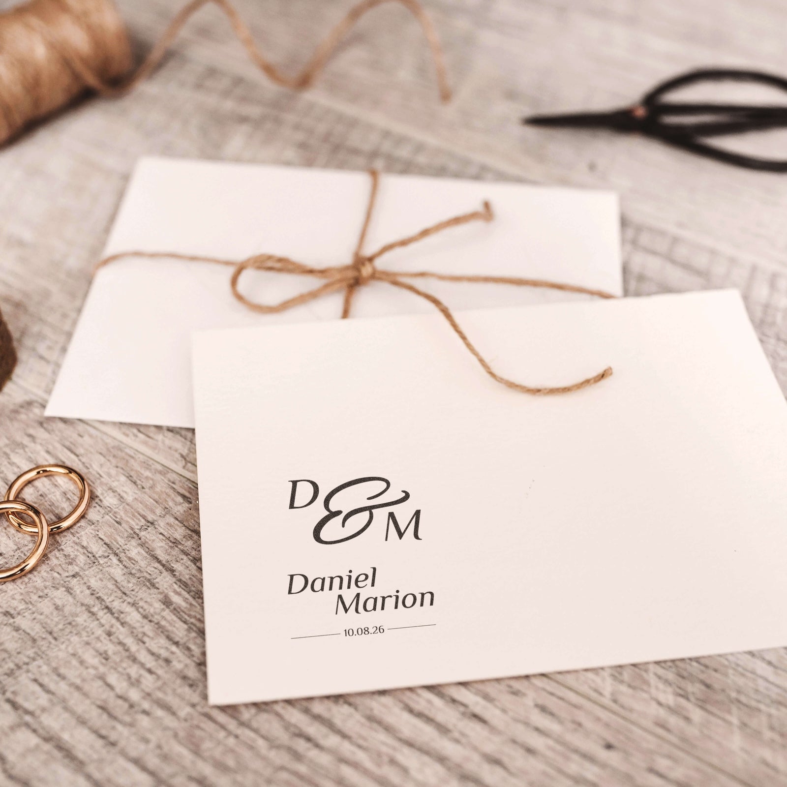 Personalisieren Sie Ihre Einladungen und Karten mit diesem eleganten Monogramm, das Ihre Initialen und Ihr Hochzeitsdatum in einer harmonischen vertikalen Komposition vereint.
