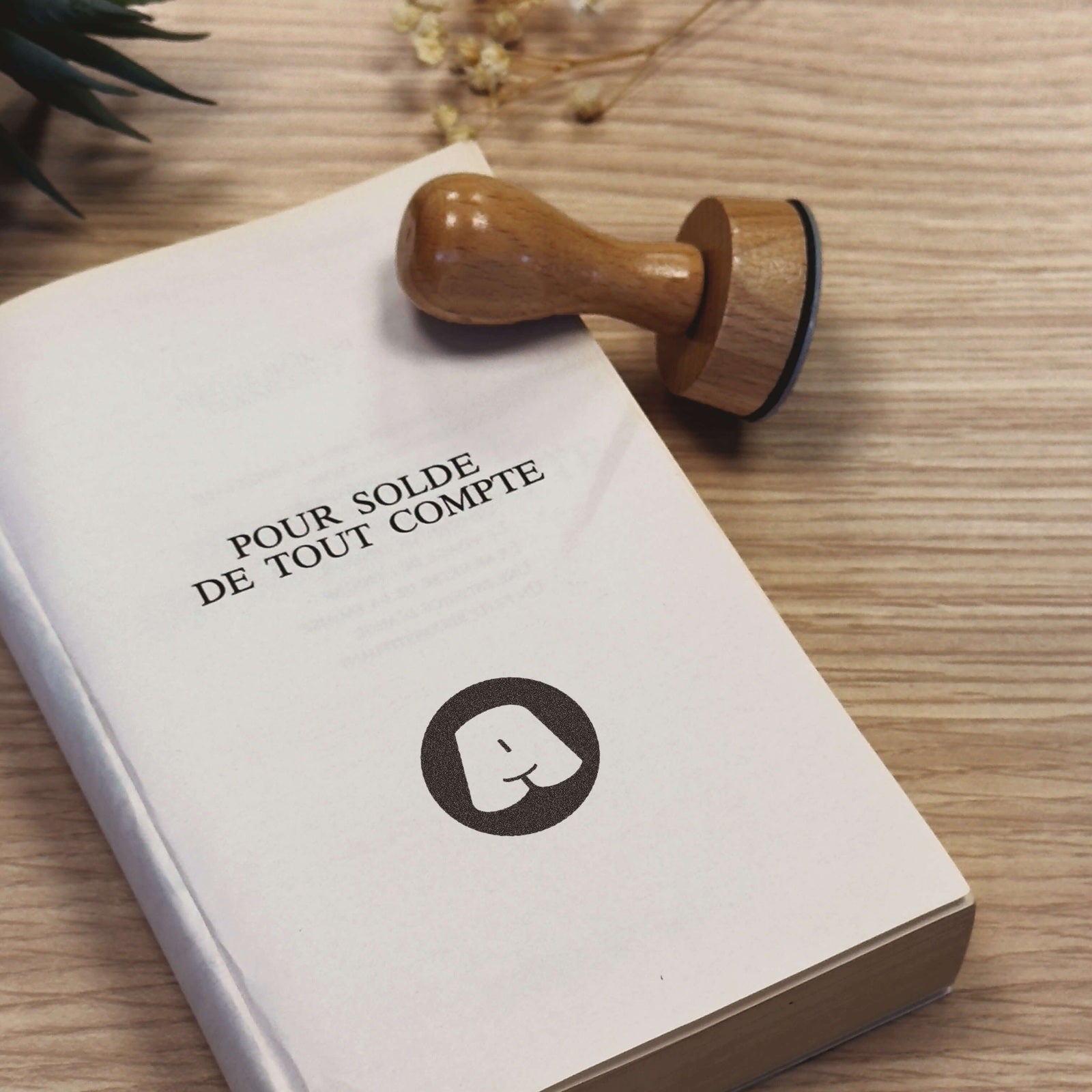 Erstellen Sie eine unverwechselbare Signatur mit diesem Holzstempelmodell mit minimalistischem Hundeschnauzenmotiv, perfekt für Ihre Exlibris und personalisierten Markierungen.
