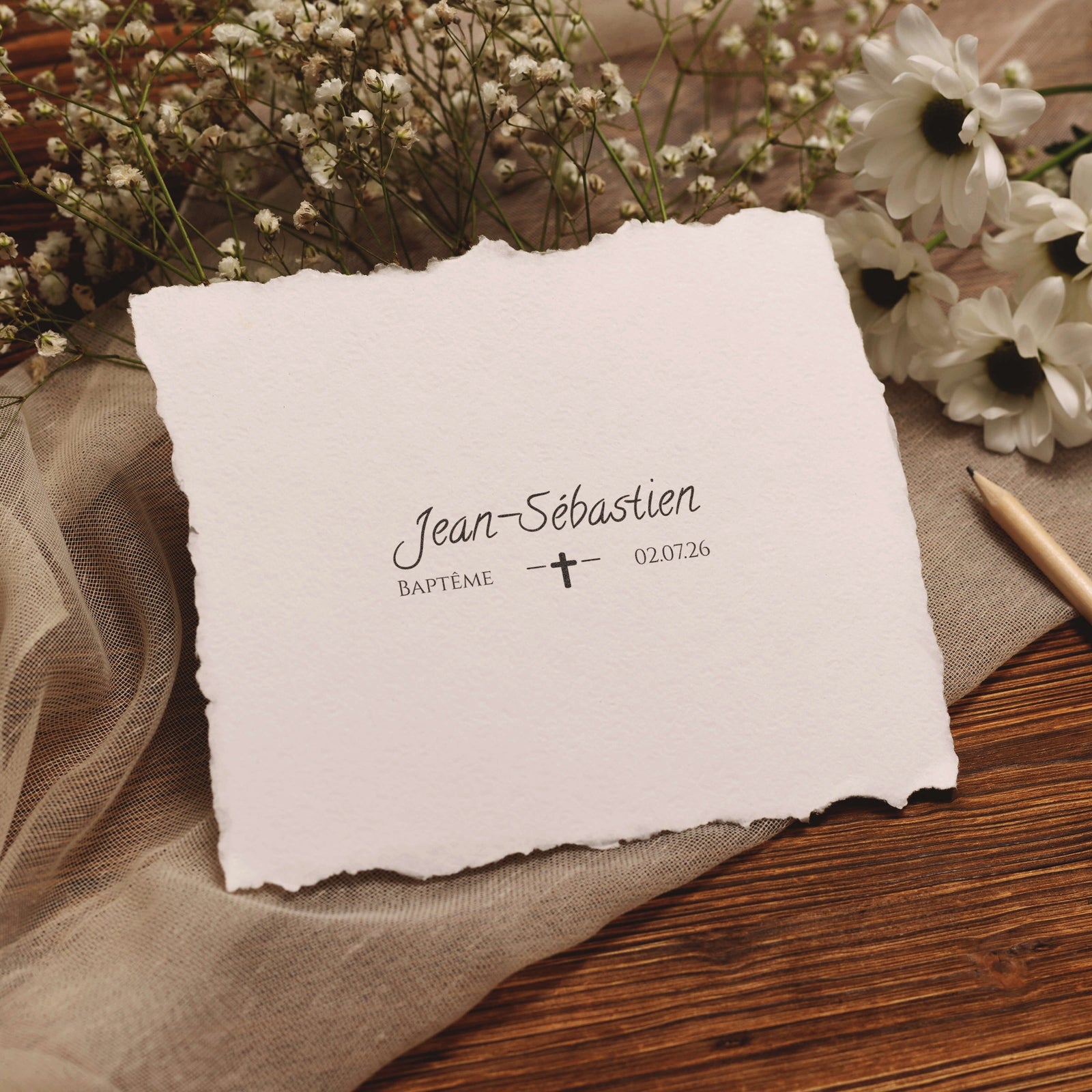 Schaffen Sie eine bleibende Erinnerung an diesen heiligen Moment mit diesem personalisierten Taufstempel in eleganter und klarer Kalligraphie.