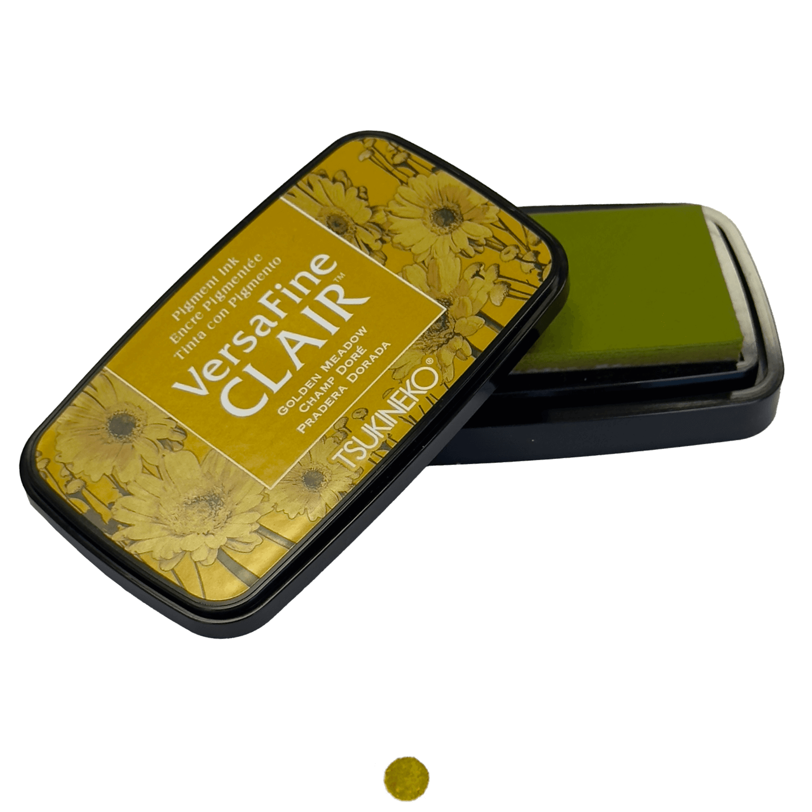 Die VersaFine Clair Champ Doré Tinte verwandelt Ihre Kreationen mit ihrem raffinierten olivgrünen Farbton, perfekt um die feinsten Details Ihrer Stempel zu erfassen.